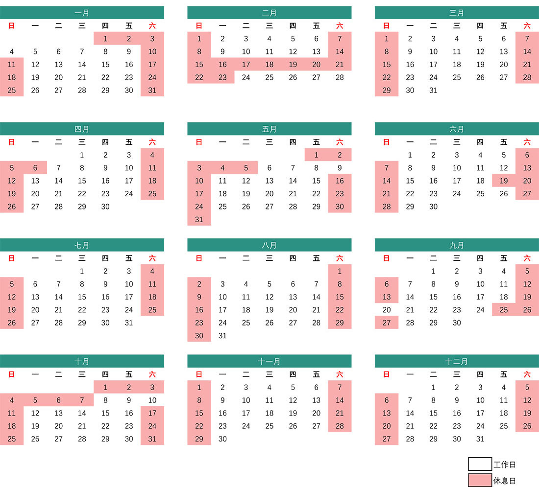 * 为方便客户查询,请参考本公司2026年度工作日历如下。此年历仅适用于THOUSLITE。